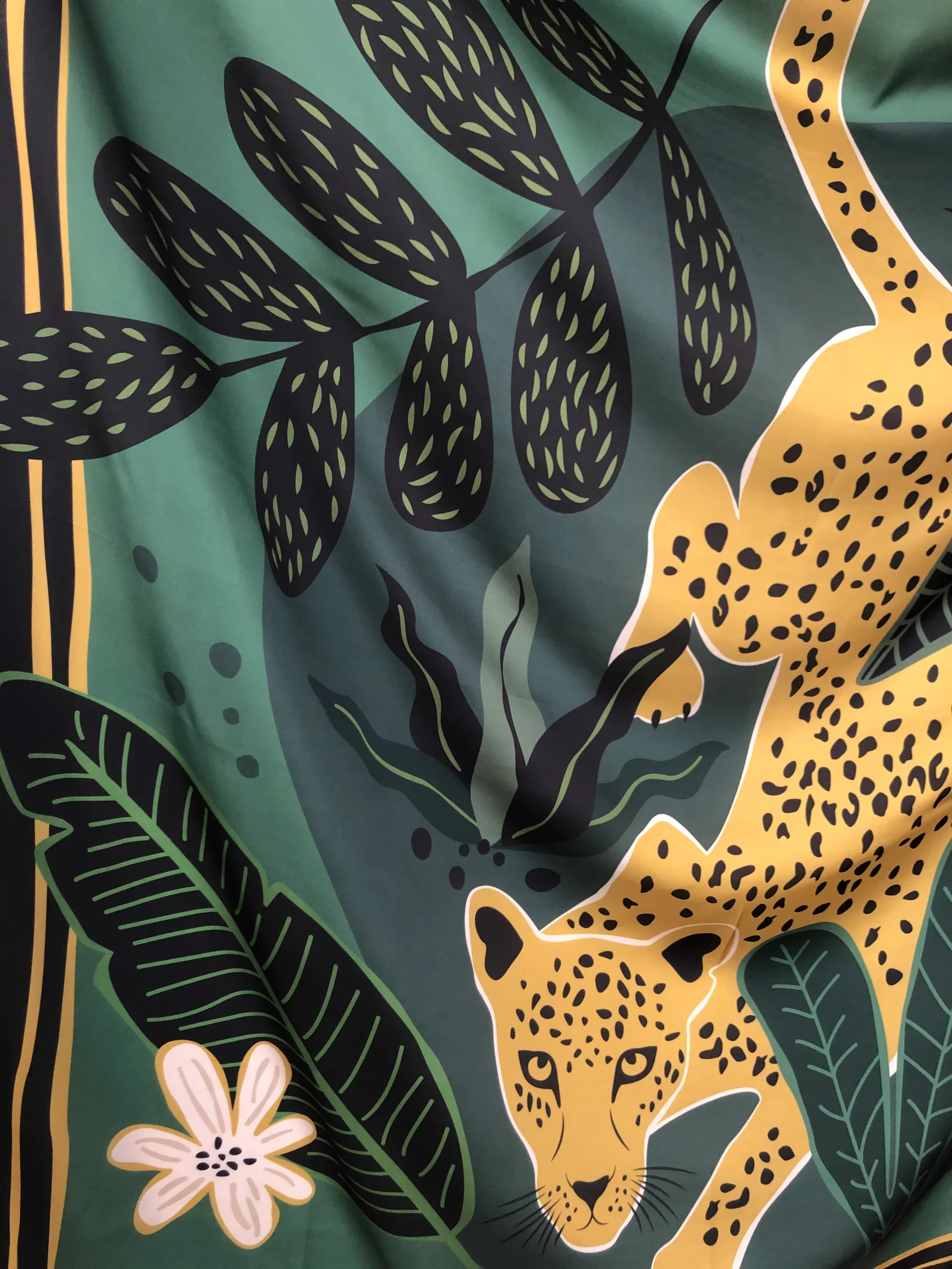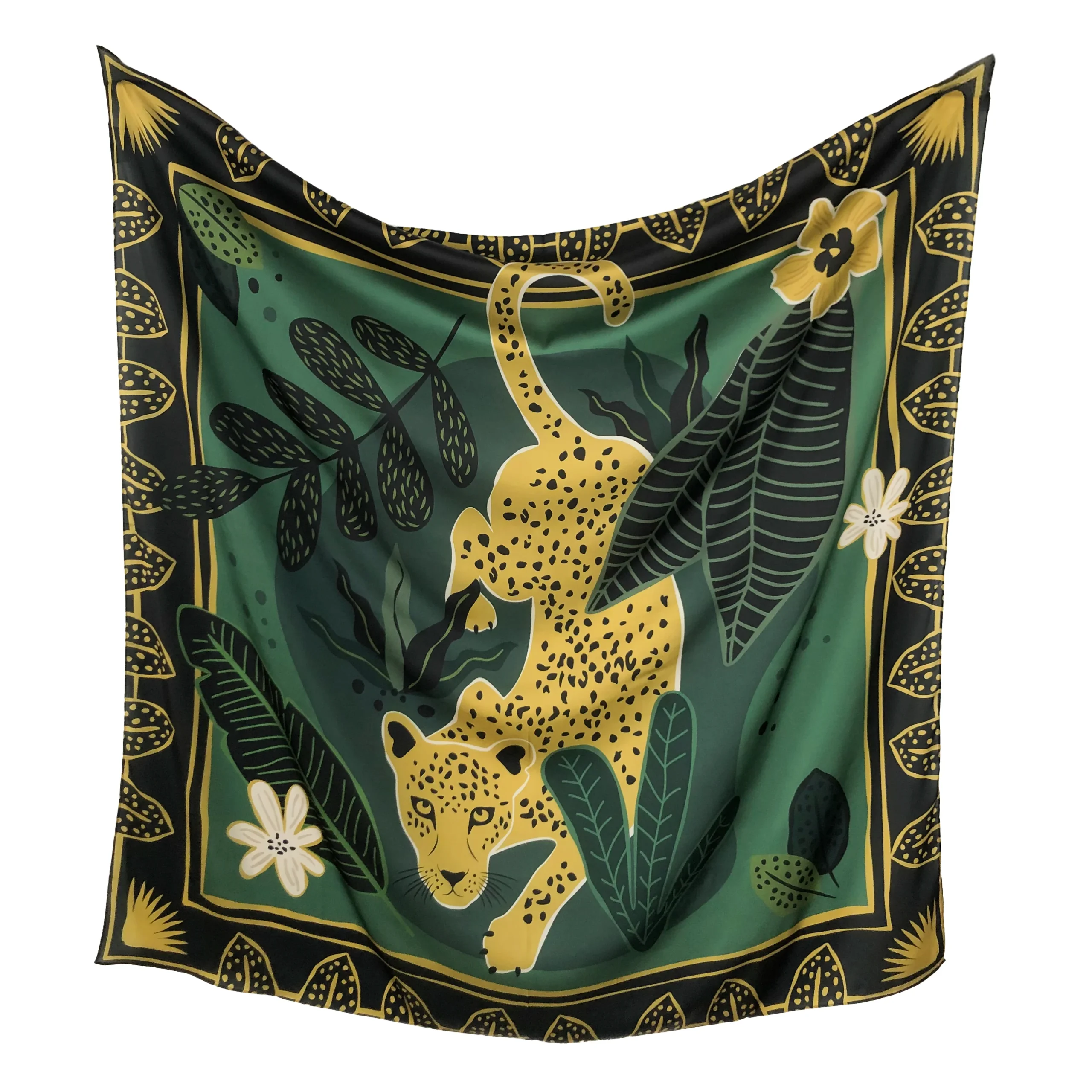 Our women’s designer scarf features an exquisite illustration inspired by this timeless folktale. The 120cm x 120cm size makes it versatile and perfect for any occasion. The beautiful design captures the essence of the folktale, showcasing the transformation of Leopard’s coat into a beautiful and unique pattern of spots.