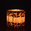 The hard wax veneer forms the outer shell of the candle, which hardly melts when the candle is lit. Hence the rich, romantic glow of the illuminated exterior as the candle burns deeper into the container lighting up the casing. The shells can still be used even after the original inside wax is gone when refitted with a votive or tea candle.